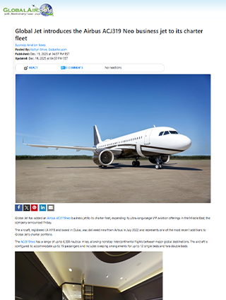 Global Jet is a world leader in private aviation. Founded 26 years ago, the Global Jet family has helped countless generations take to the skies with an unrivaled commitment to excellence. The company is still privately owned by its founders, actively working in the business. If you are thinking about chartering or owning your private aircraft, consider joining the Global Jet family. We are more than service providers; we are partners.